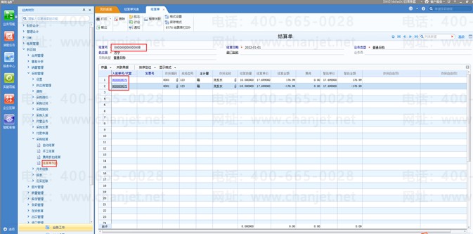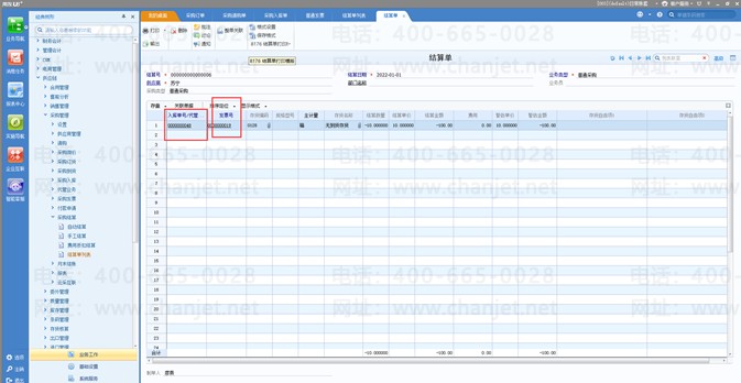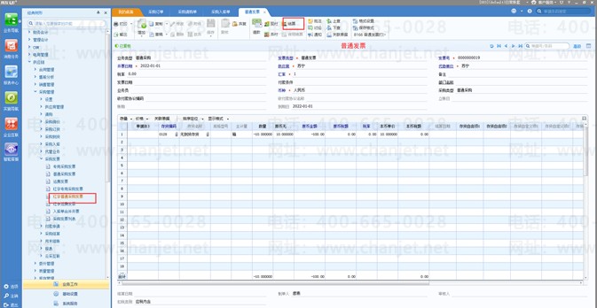 6、参照红字入库单做红字的采购发票并结算;