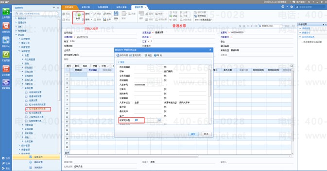 3、入库后开票后退货:参照采购订单(红字)做红字的采购入库单,参照界面查询条件执行完未关闭选择为是,参照红字入库单做红字的采购发票,若之前的蓝字入库单和蓝字采购发票已结算,参照界面结算完毕是否显示为是过滤,再去点击采购发票的结算按钮,或者到采购管理手工结算分别选择红字入库单和红字采购发票结算即可;