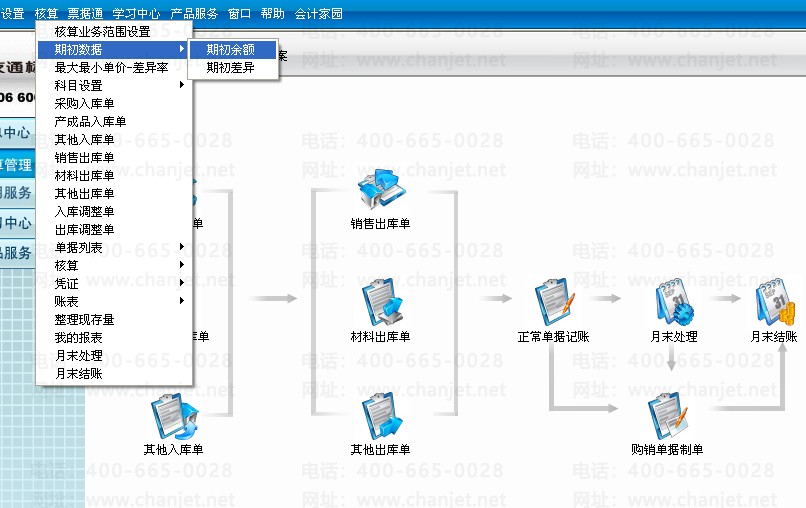 说明:核算这边的期初总金额必须跟总账那边的期初数据的对应总金额是一致的(当与总账系统一起使用的时候)。
