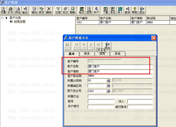 1.1客户档案:先对客户进行分类设置,然后把所有的客户都统一增加到里面