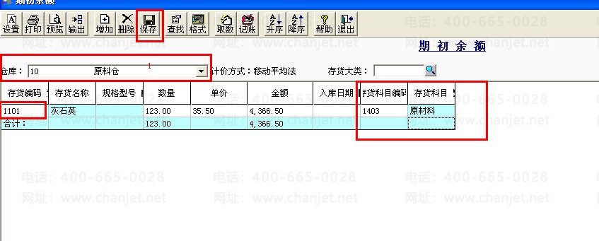 1. 录入存货期初数据