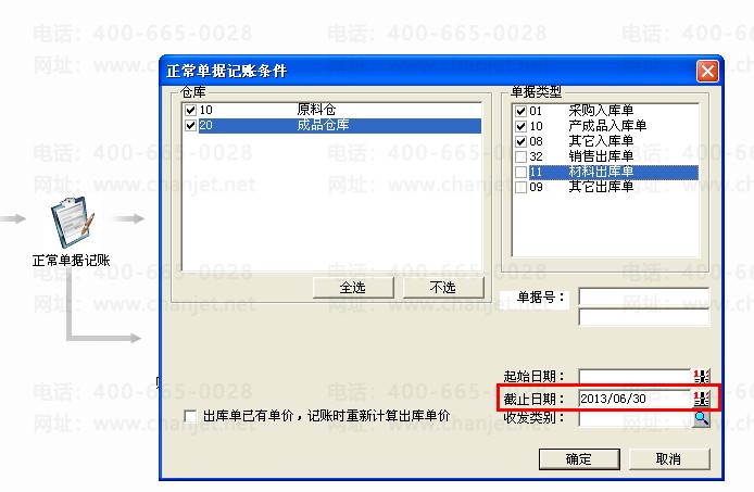 4.2 仓库处理,核算模块里面必须对仓库进行处理后,材料出库单、销售出库单的单价系统才会计算出来。