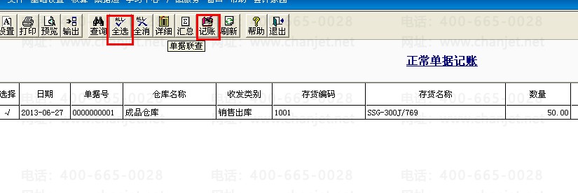 4.1 先对入库单进行记账,然后再对出库的单据记账。选择,然后点记账