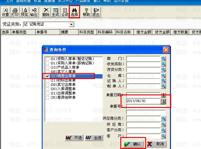 5.2 选择查询出来的单据,确定。