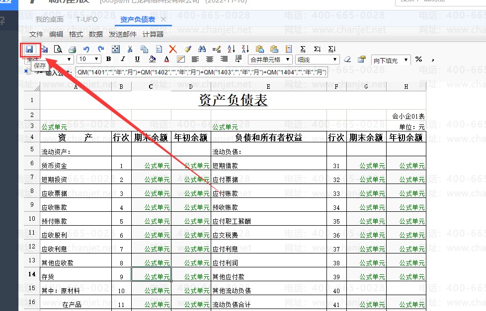 改完之后点上面的保存,然后重新打开资产负债表就会按照新的公式重新计算