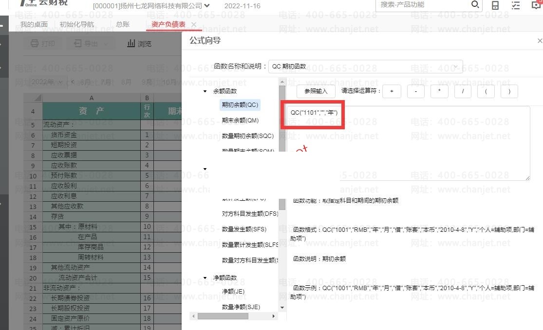 t+ONLINE的报表和专属云一样,就是打开的是公式,参考13.0的公式修改方法修改就可以了,QC是年初,QM是期末,FS是发生额,LFS是累计发生,XJLL是现金流量的意思。后面的1101是科目,可以直接修改取数的科目,或者复制一下当前的,修改科目编码,做+或者-就可以了