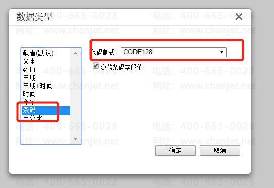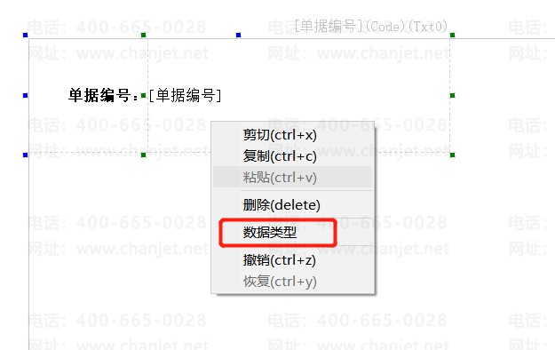 2.右键点击【数据类型】,将类型设置为条码,码制可自行选择
