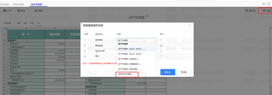 T-ufo预制模板设置中选择模板合并资产负债表后,切换不回来