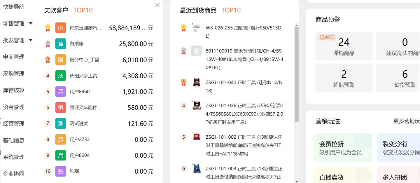附带有商品的畅销滞销排行、超储预警、缺货预警、批次保质期管理等;