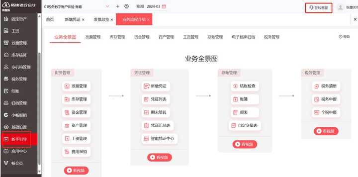 好会计财务软件内,设置了新手引导页面,可以直接进行手册、操作、视频等多种学习方式进行使用,对会计人员来说比较便捷;