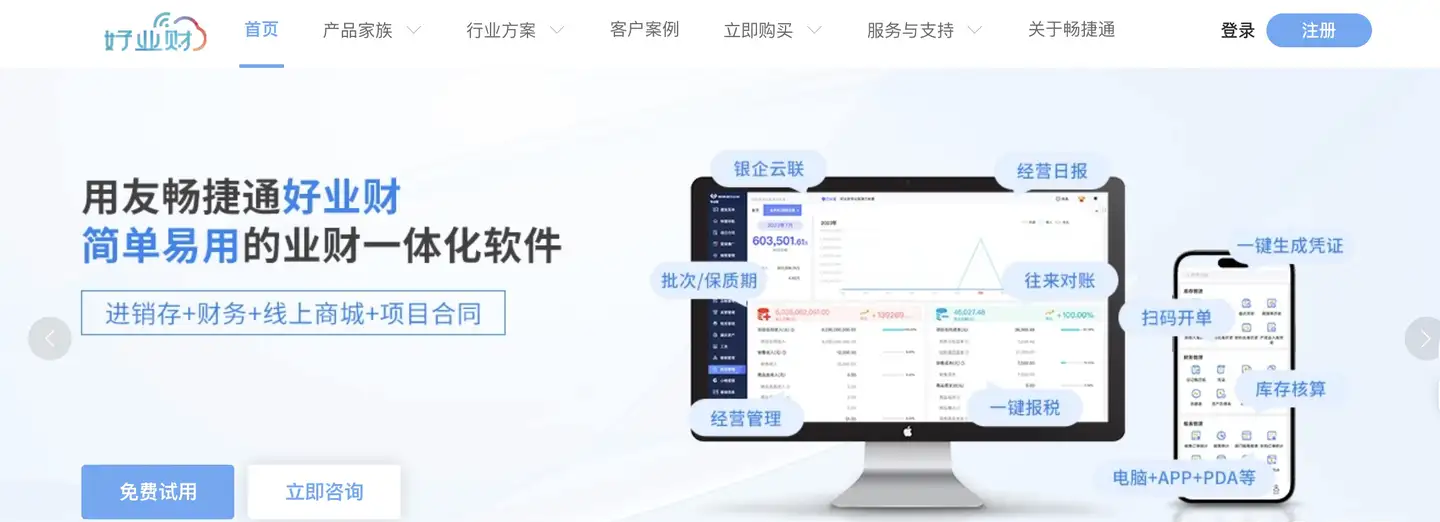 【专享】点击领取>>>用友·好业财ERP体验账号>>>附赠指导、手册、视频。