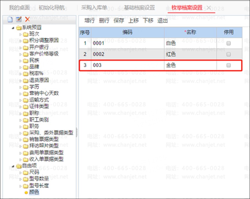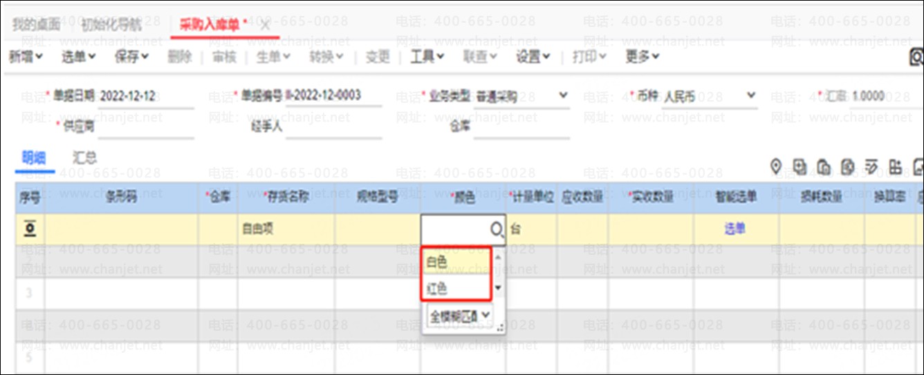 填写单据时可以手工输入存货自由项枚举档案,系统会自动生成对应的存货自由项枚举档案: