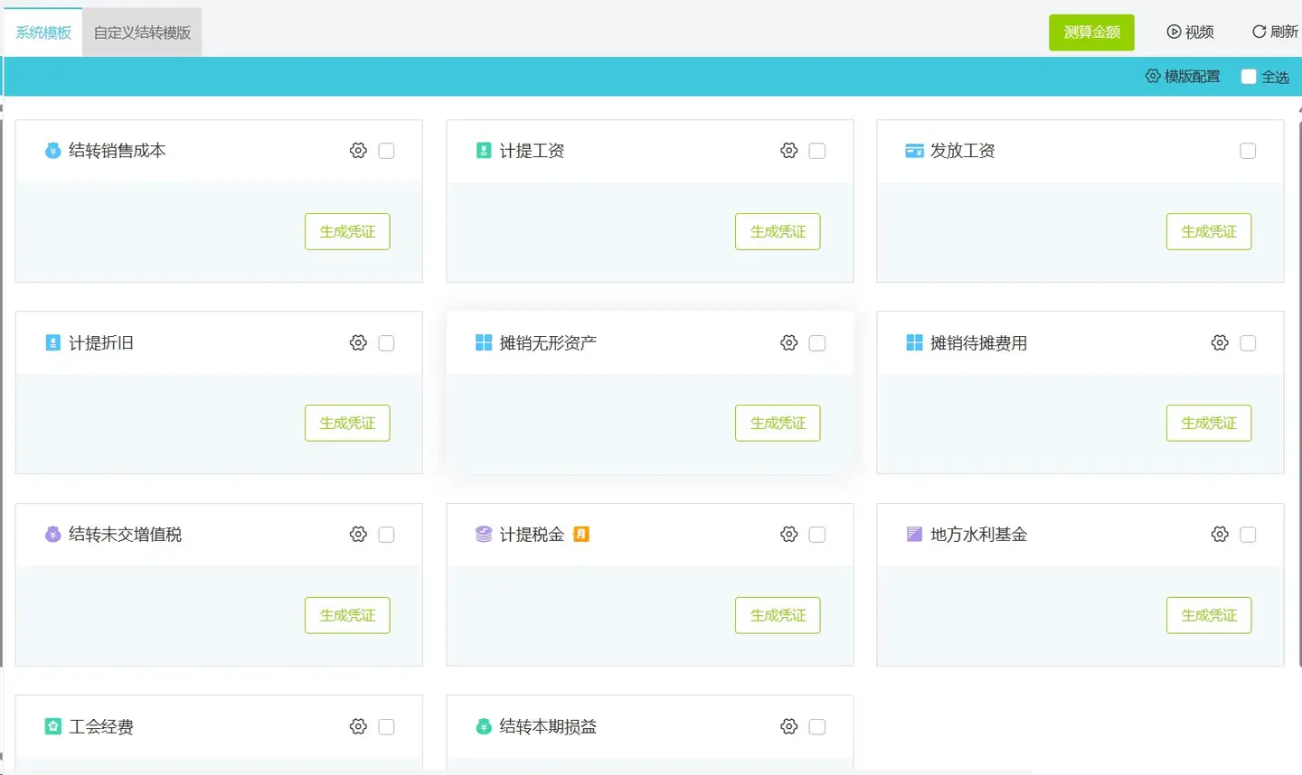关键是,我比较容易忘的:固定资产折旧、无形资产摊销、长期待摊费用摊销等事项,直接可以在结账前一键做账,不会忘记的:
