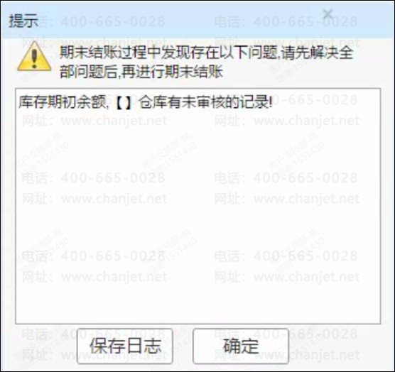 Q:业务结账时提示:库存期初余额,【】仓库有未审核的记录!