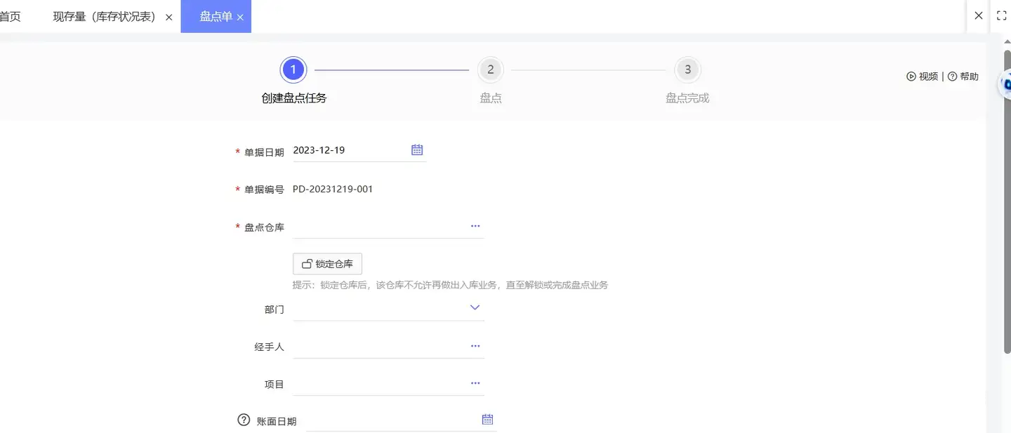 企业的商品品种多、收发频繁,在日常商品收发、保管过程中,由于计量错误、管理不善等原因,有时会发生商品的盘盈、盘亏和毁损现象,从而造成商品账实不相符。财务人员可以创建盘点任务,系统会自动生成清单。
