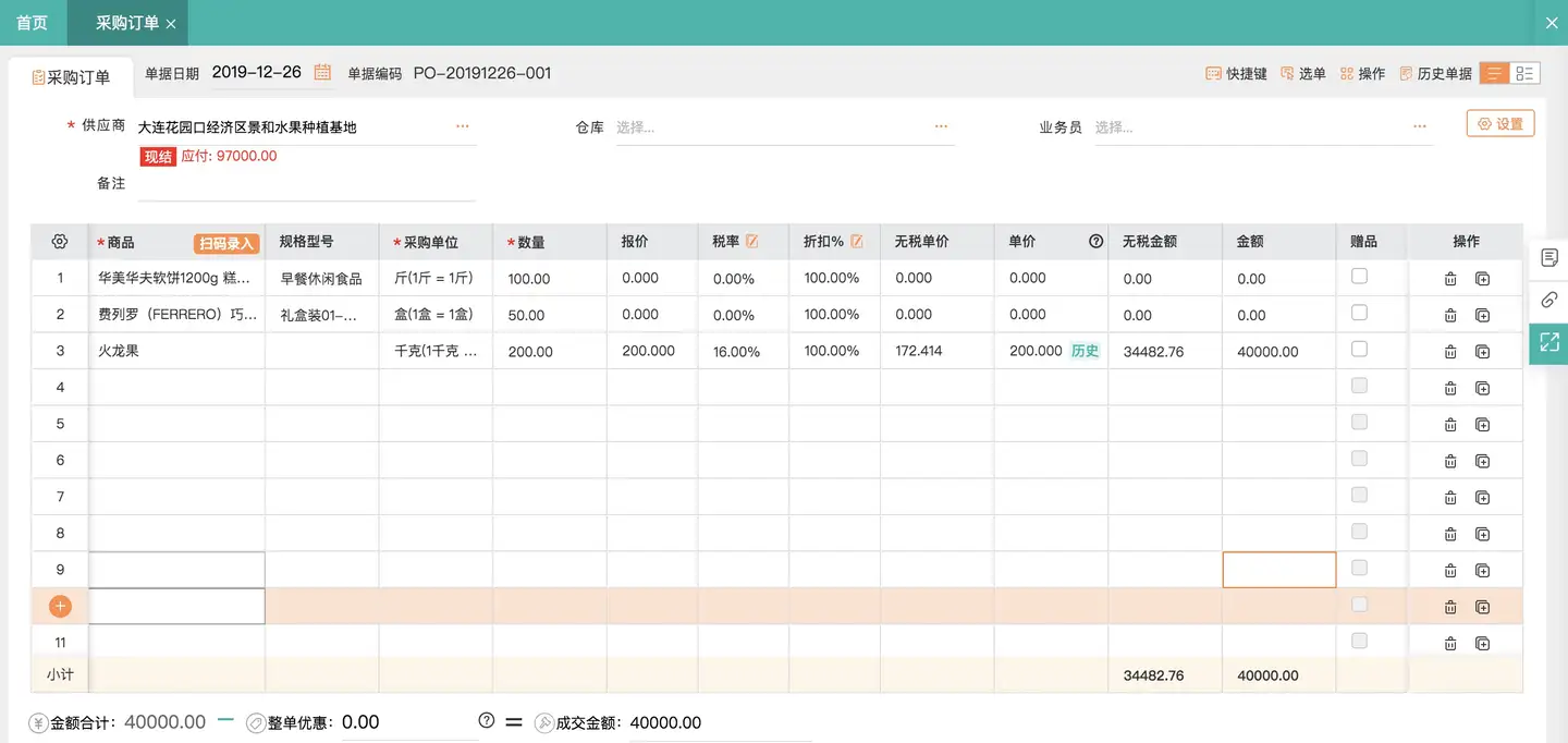 当按照订单采购的货物到达仓库后,采购订单生成进货单,根据实际到货数量修改进货单数量,进货单保存或审核后,仓库库存数量增加。