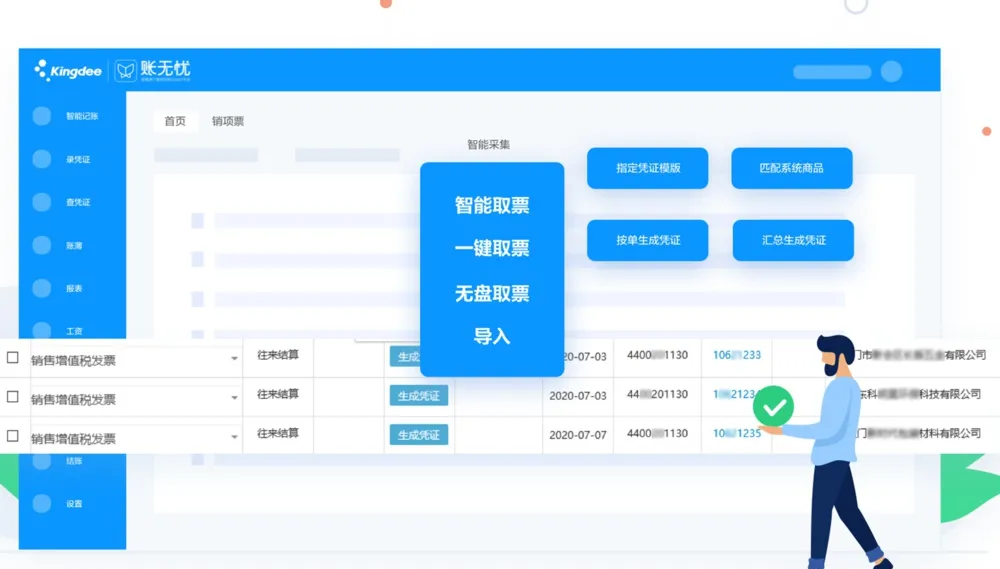 智能取票、智能做账、批量报税。