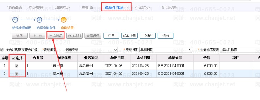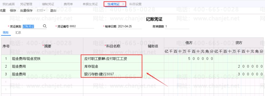 3、发放工资的费用单生成凭证如下图所示。