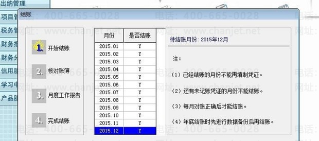 首先,打开软件,看一下账套的各个模块是否做了12月份的月结,确保上年的12月做完月结。做过月结的会面都会有一个“Y”。