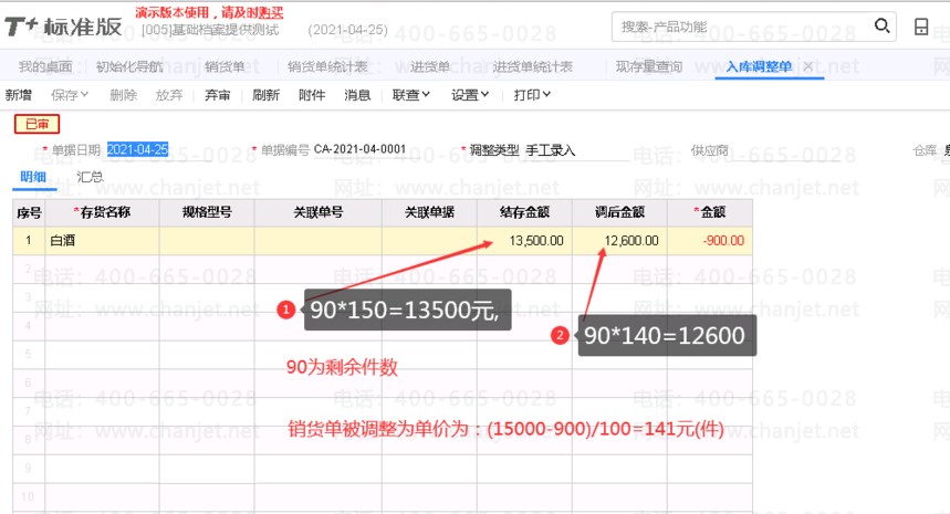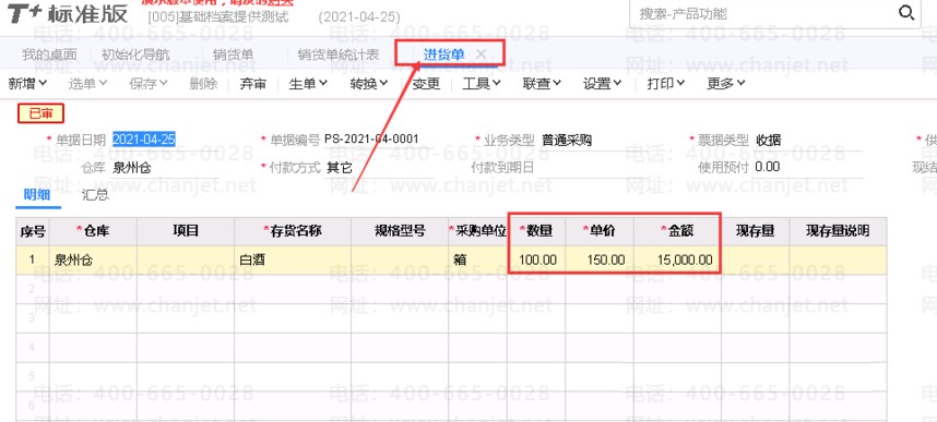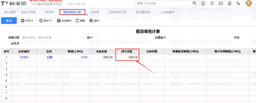 以没有仓库期初的为准来进行测试.