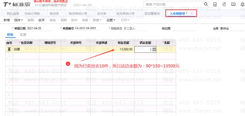 4、开始做入库调整单,如下图所示: