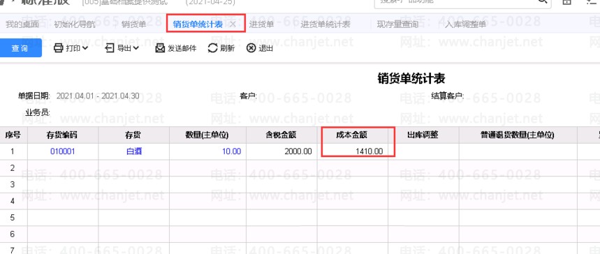 5、销货单统计表查询如下图所示: