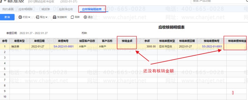 查应收核销明细,及销货单两个分别都没有核销金额及销货单也没有结清,如下图所示: