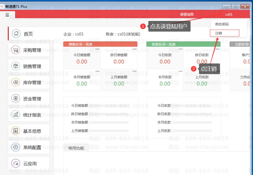 T1plus商贸宝登陆后如何正确退出,如下图所示: