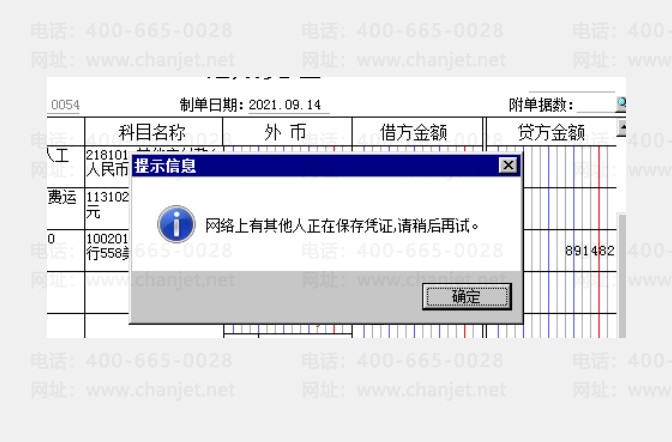 总帐填制凭证保存时出现“网络上有其他人正在保凭证,请稍后再试”