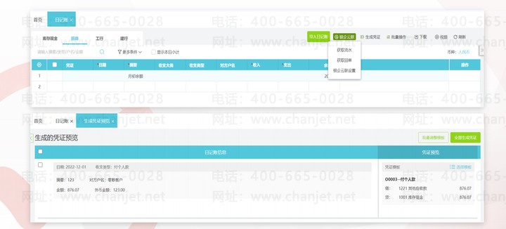 日记账自动获取银行回单,生成日记账,一键生成财务凭证。