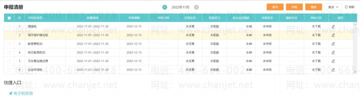 可以进行税务一键申报、进销稽核、税负预警等。