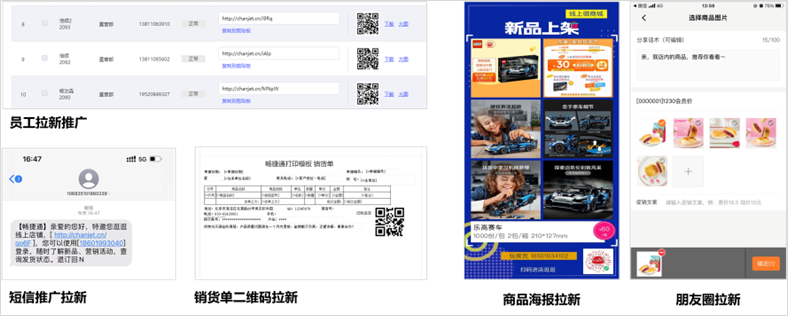 4.新品、促销活动,员工通过推广码、短信、二维码海报,多渠道拓展客户、黏住老用户