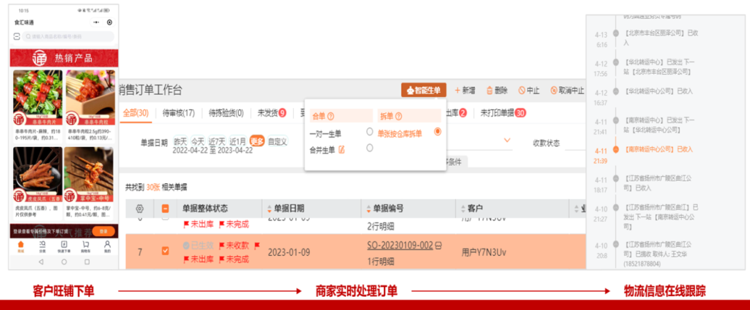 3. 发货智能:虽然冷库离门店有距离,但是支持远程云打印,门店开单、仓库自动打印,通过“语音播报+手机消息”即使备货提醒、快速发货