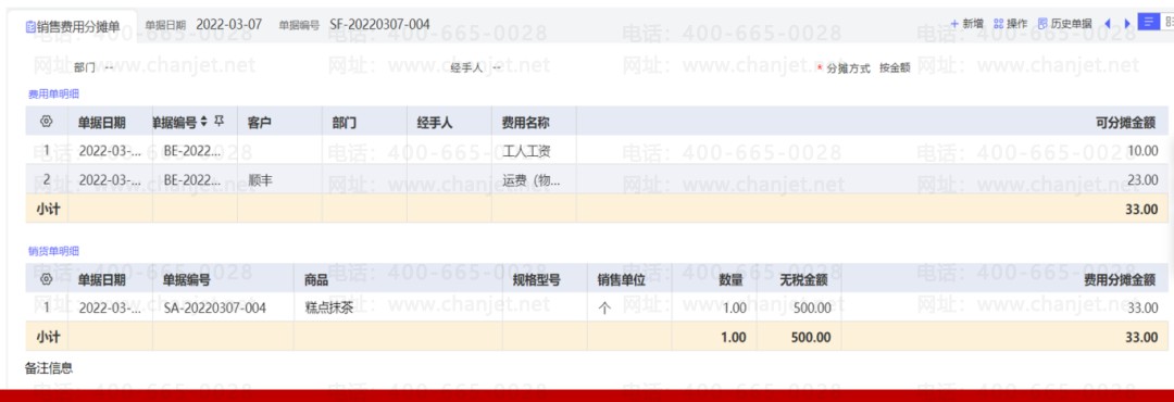 1. 费用分摊:无论是采购时候发生的费用,还是销售时候发生的费用,都能按单实时分摊,或者月底统一分摊,精准计算销售净利;