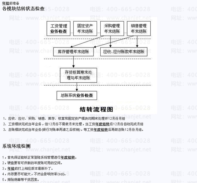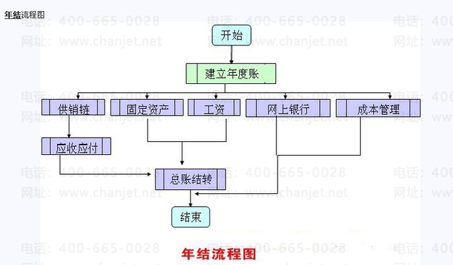 答:供销链、应收应付、固定资产、工资、网上银行、成本模块结转不分先后,其它按年结流程图执行