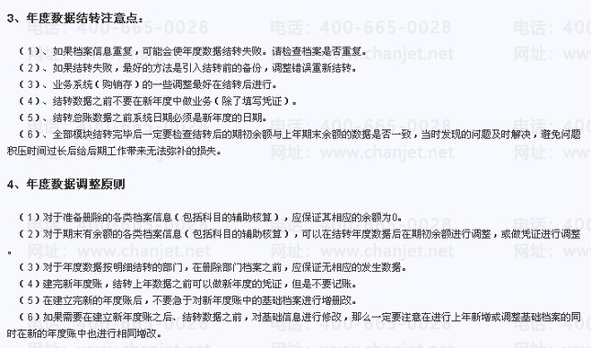 9、问:成功建立年度账是否可以立即调整基础档案的内容?答:在建立完新的年度账后,不要急于对新年度账中的基础档案进行调整和删改,等年度结转完毕后,再到新年度账中对需要调整的基础档案相关信息进行调整。否则会造成后续的“年度结转”时出现错误提示,或年度结转后数据出现错误
