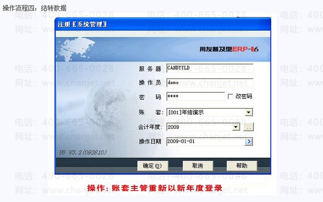 3、只有在上一会计年度所有工作全部完成并准确无误的前提下,才能进行【结转上年】操作,否则会造成结转到本会计年度的数据不正确。