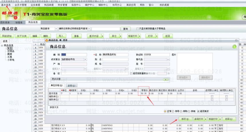 1.点击【基本信息】-->【商品信息】,添加商品信息中将零售价添加进去,假设零售价50.35元;