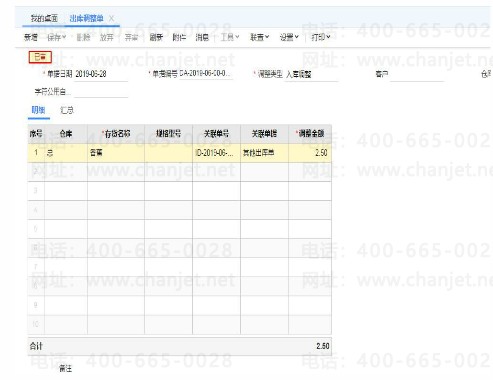 2、选择存货后,维护【金额】点击【保存】—【审核】后即调整了存货的出库成本。手工填制出库调整单,不能关联出库单,只调整存货的结存成本。