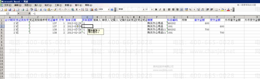 1、打开EXCEL凭证模板,如下图所示;