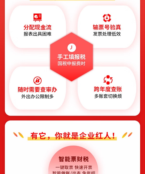 l  自动出具财经报表,税务检测一键报税,效率倍增;智能识票、报销、入账、归档,数据精准计算
