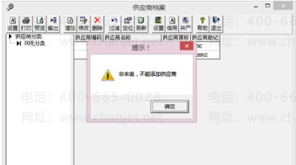 3、在这里要注意一下,如果直接点增加,系统会提示“非末级,不能增加供应商”,如下图: