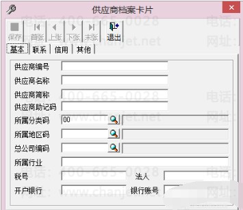5、这时,就会弹出“供应商档案卡片”对话框,如下图: