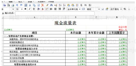 3、找到现金流量表模板并打开,会弹出来一个界面,这里面就会看到现金流量表的公式。双击某一个公式单元,就会弹出来一个窗口,这里面就直接修改报表的公式。