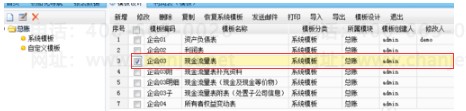 2、在软件的上方,找到”T-UFO——模板设计“,点开之后会在界面看到系统自带的一些列的报表。