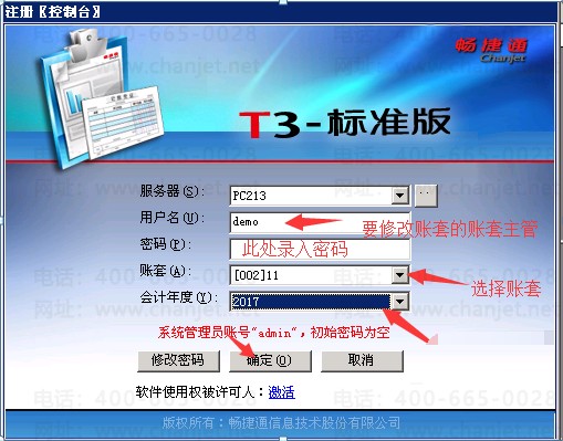 1、点桌面:系统管理-->文件-->注册(用户名为要修改账套的账套主管);