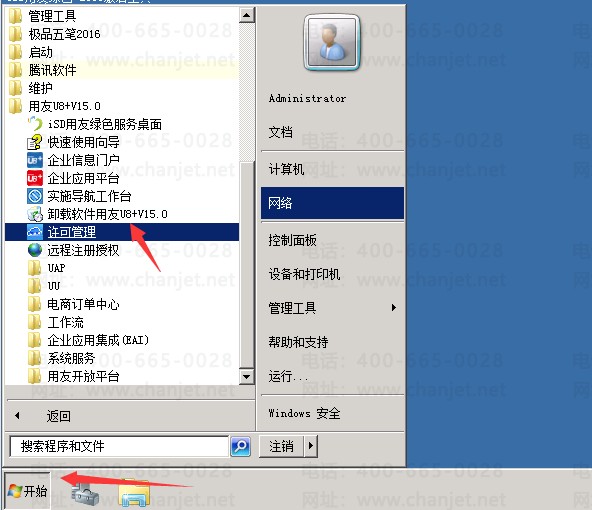 方法步骤:开始-->所有程序-->用友U8+V15.0-->许可管理