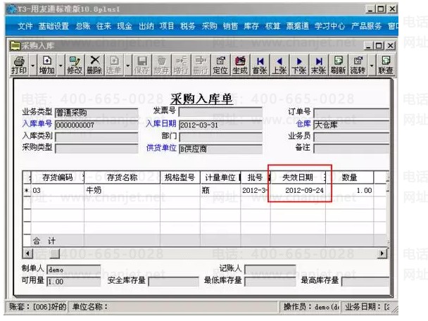 对存货设置保质期管理