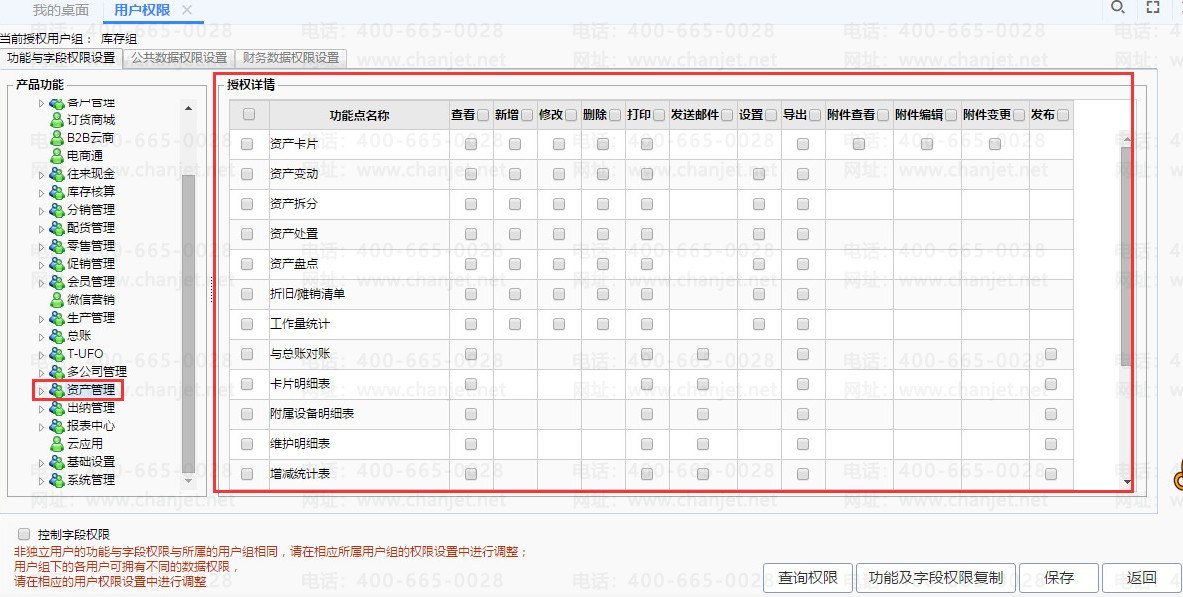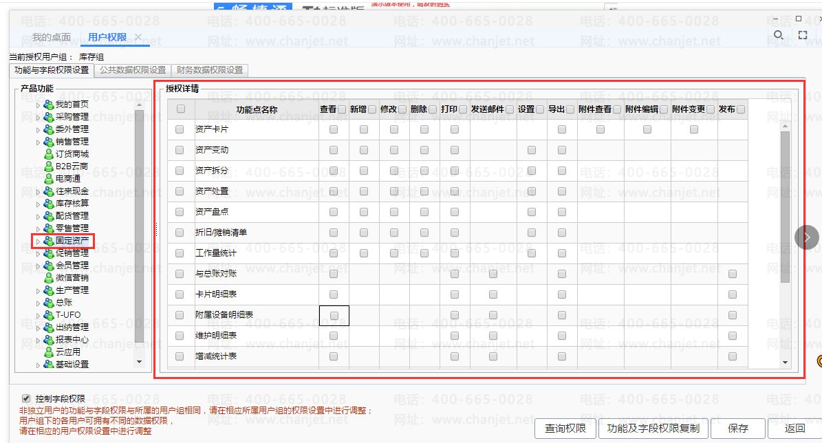 标准版的资产模块名称为【固定资产】,并且【系统管理】-【用户权限】里显示的名称,标准版也显示为【固定资产】;专业版与标准版的菜单显示是一致的。