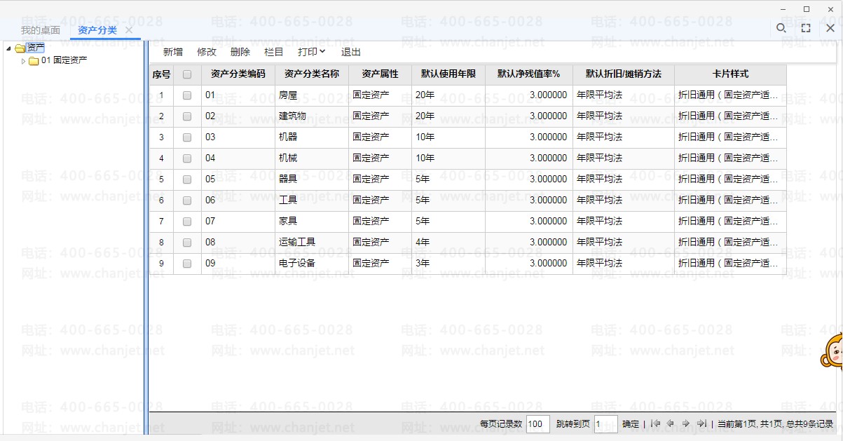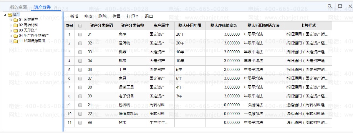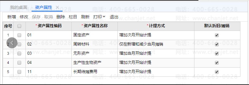 标准版资产属性和资产分类只有固定资产;